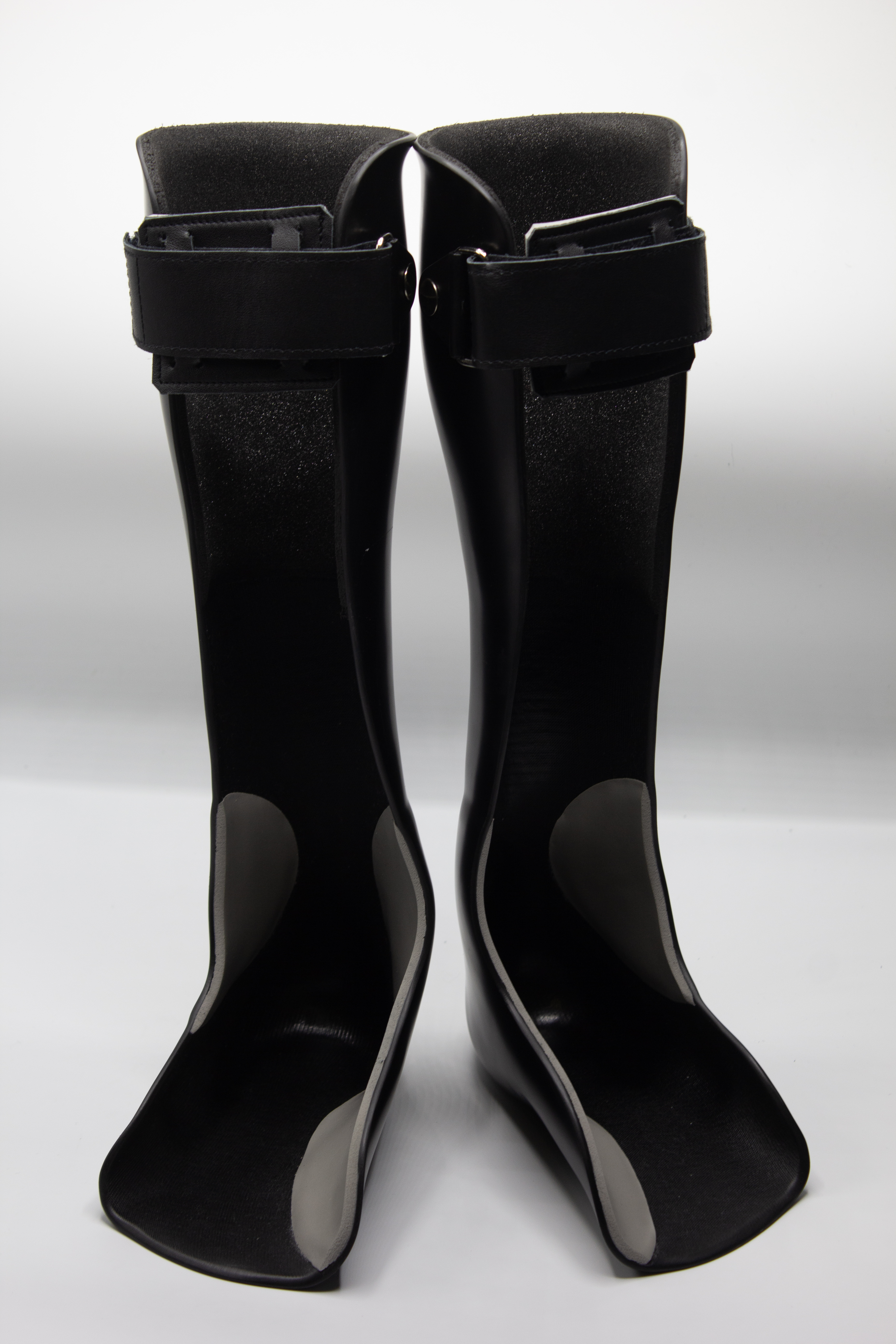 A custom-made AFO is most commonly manufactured from thermoplastic. It is typically produced using either a plaster cast or a 3D scan of the leg to ensure an accurate and individual fit.